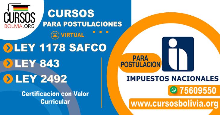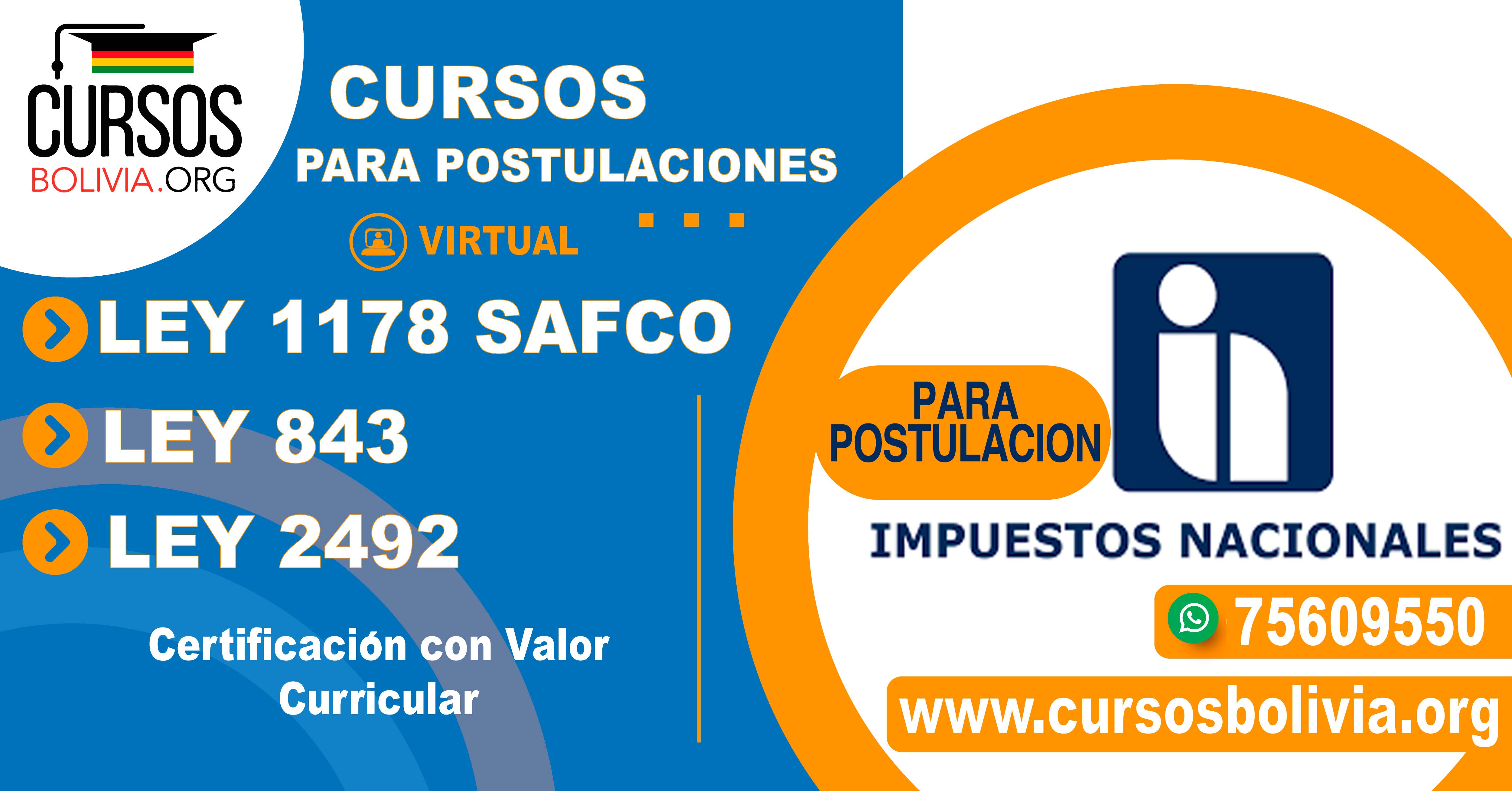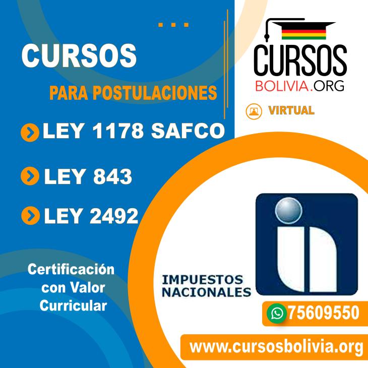 CURSO LEY 2492 CÓDIGO TRIBUTARIO BOLIVIANO - LEY 843 IMPUESTO AL VALOR AGREGADO y LEY 1178 Sistema de Administración y Control Gubernamental (Incluye Últimas Modificaciones) (Requisito Tener Laptop, Computadora o SmartPhone con Conexión a Internet)