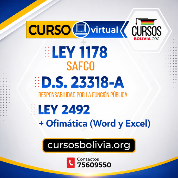 | 3 Cursos Ley 1178 - Ley 2492 y Ley 843 Virtual | 95 Bs | Ver detalles | |